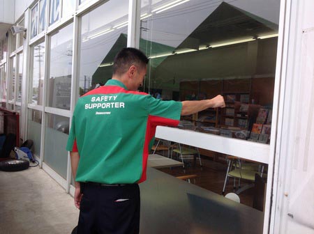 店内の窓ガラスに耐震用ガラスフィルムを施工いたしました。