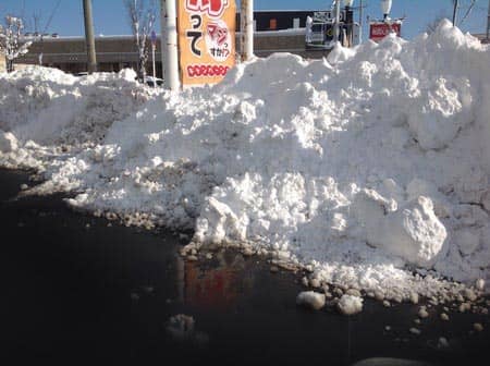 ここ数日の雪で青森市内も雪の山がとうとう出現しました。