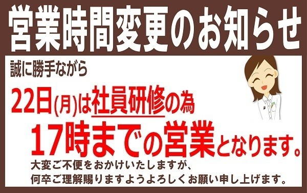 本日は☆時間短縮営業日☆です
