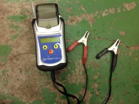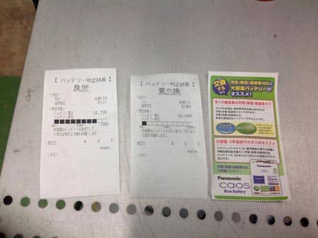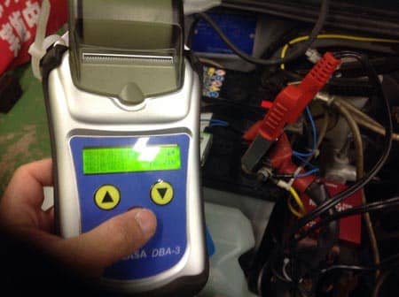 見た目だけだとわからないのでバッテリーテスターを使って診断します♪(´ε` )