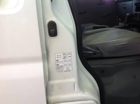 写真のように、だいたい運転席のドア付近に表示があります。