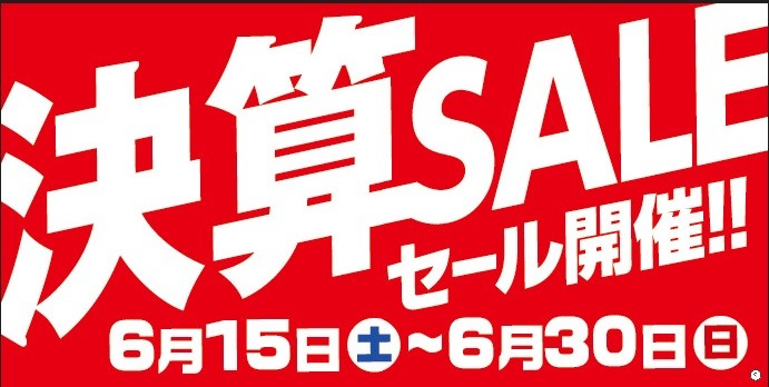 明日、6/15(土)から 《決算セール》 開催致します!!