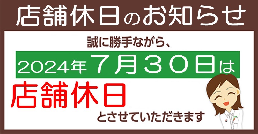 今月の30日は店舗休業です。