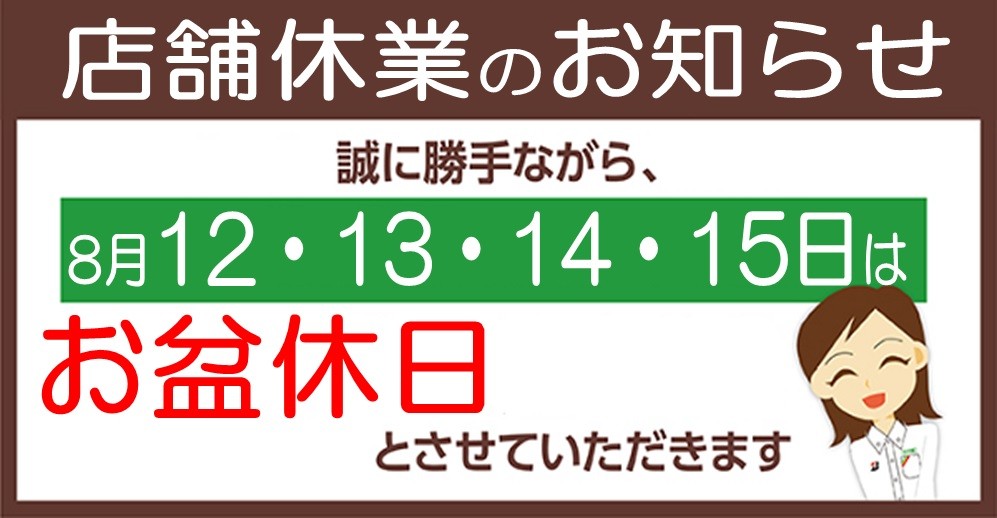 8月12日は【お盆休日】です