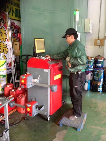 作業は、当店のアライメントの鬼・田中が