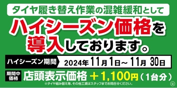 【 重要 】ハイシーズンタイヤ脱着工賃についてのお知らせ