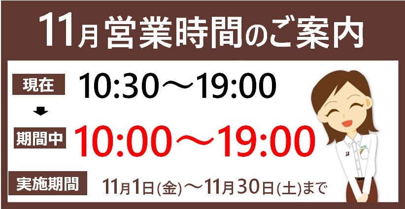 11月中は 定休日 無しで毎日営業致します!!(*'▽')v