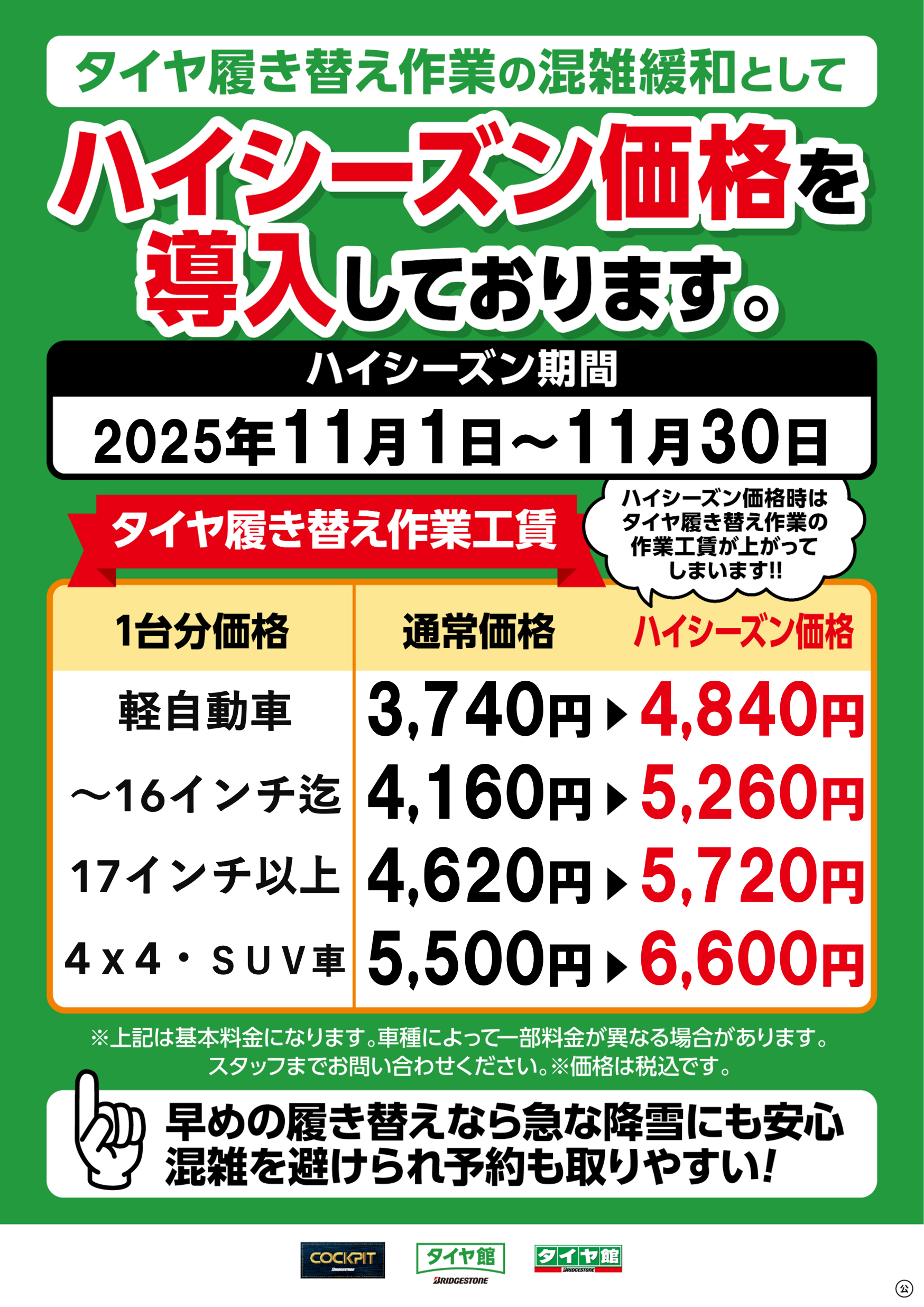 この度、タイヤ交換(脱着)作業の混雑緩和のため