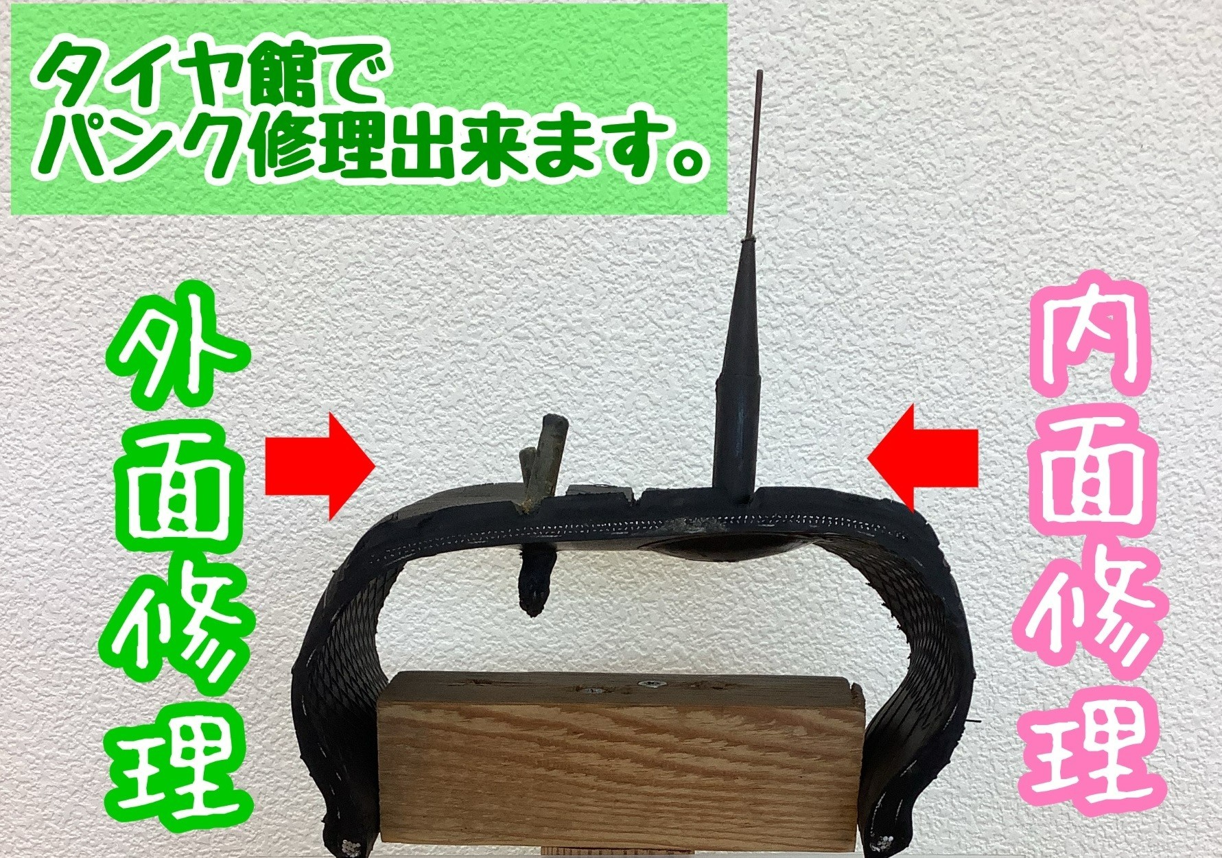 パンクにもいろいろ原因はございますが、タイヤ館ではパンク修理も出来ます!!