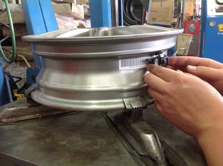 一つ目の写真は、TPMSのセンサーを取り付けている所です。