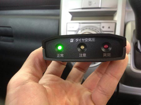 二つ目の写真は、TPMSの受信機本体がタイヤの空気圧を元にランプ表示しています。