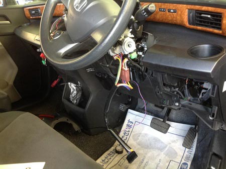 写真にある通り、運転席のパネルを外し電源を取る必要があります!