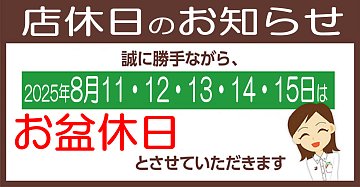 8月20日は【定休日】です