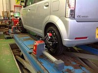 本日ご来店されたお客様で、水たまりだと思い走行したところ、穴ぼこだったらしく 強い衝撃をうけ、しばらくしてみるとタイヤがペシャンコになっていたそうです。 来店時、点検させて頂いたところタイヤサイドに傷がありました。修理不可の為 新品交換となりました。念のため、アライメント測定もご...