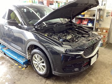 こんにちは 今日は昨日違い、朝から寒く風も強いですが 元気に営業しています。 さて、本日オイル交換でPITに入庫した マツダ CXー8です。 こちらはディーゼル車になりますが、当店でもご対応していますので ディーゼル車にお乗りのお客様はいつでもご相談ください