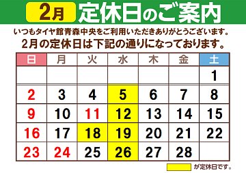 2月18日は【定休日】です