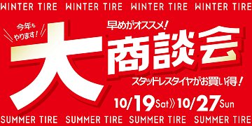 こんにちは、タイヤ館青森中央 スタッフ渡辺 です いつもタイヤ館青森中央のWEBをご覧頂きありがとうございます♪♪ 10月19日より開催しておりました《 大商談会 》!! 本日、10月27日最終日となりました!! 冬の準備は、お済でしょうか? 冬タイヤ、ホイールセットはもちろん、 オフシーズン夏...