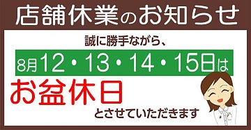 ☆ お知らせ ☆ 明日から【 お盆休日 】となります!!