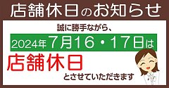 ★ 重要 ★ 今月の 16・17 日は店舗休業です