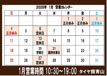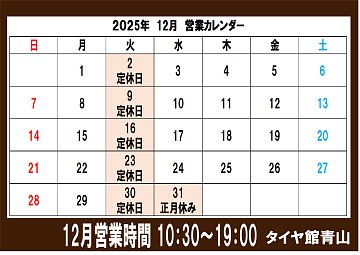 【〜タイヤ館 青山の休業日のお知らせ〜】
