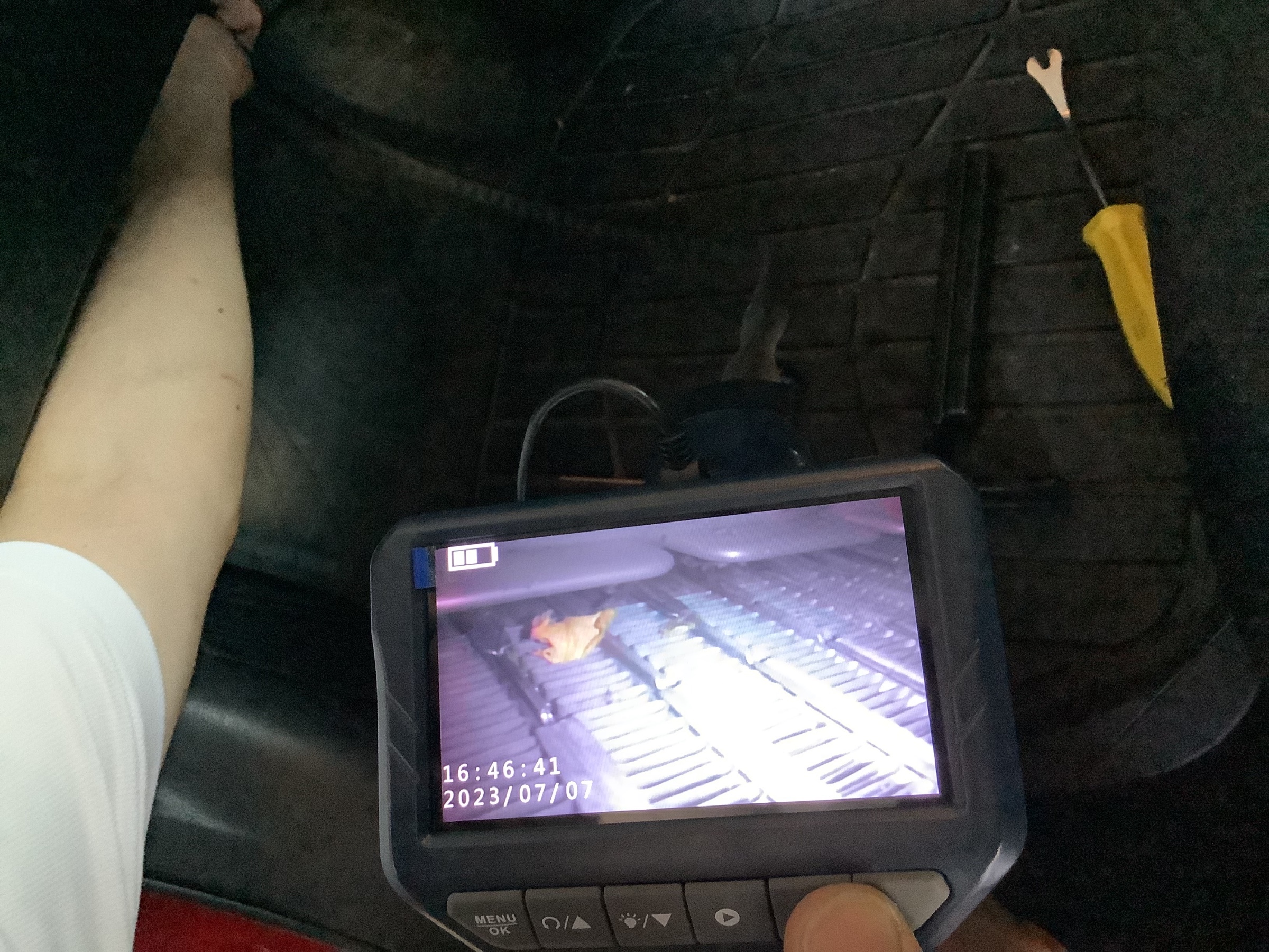 ファイバースコープ付きのウルト製洗浄機でエバポレーター本体の汚れ具合を確認し、洗浄スタートです!