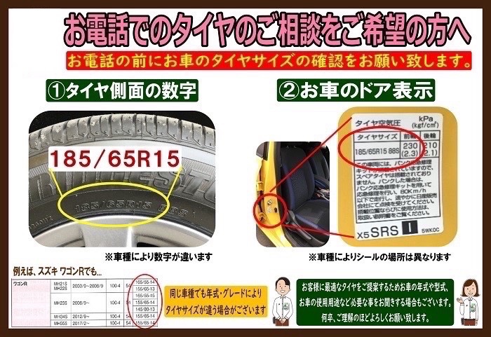 タイヤサイズの確認をしてから、ご連絡の方よろしくお願いしますm(_ _)m