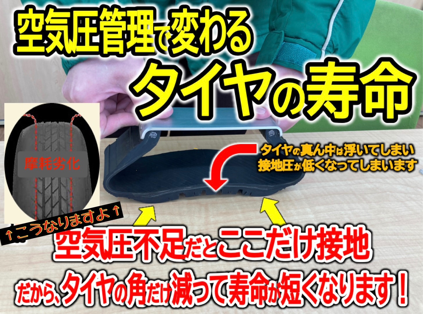 タイヤの空気圧が適正でないとタイヤの寿命は大きく変わります...