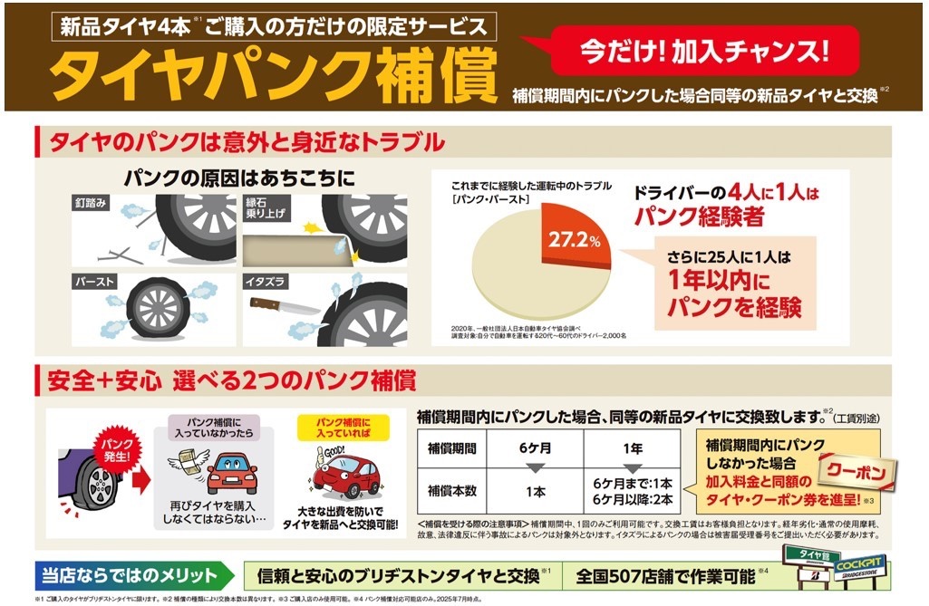 “もしも”に備えてのパンク補償はいかがですか?