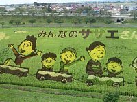 田舎館村でやっている、田んぼアートに行ってみました。 今回はサザエさんも描かれているという事で 田舎館の道の駅にある第2アート会場で写真を とってきました。色んな品種の稲で色付けされて こんなに大きな絵が浮かびあがってるとは 思わなかったので、ただただ感動でした。