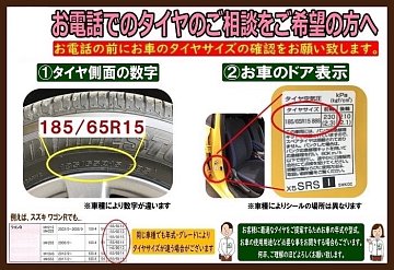 こんにちはー! 青森県弘前市にある タイヤ館 青山店です!! お電話でのタイヤ見積り希望のお客様ー! お問い合わせの際は、下記の画像を参考に タイヤサイズの確認をしてから、ご連絡の方よろしくお願いしますm(_ _)m また車種と年式もお伝え頂きますと、より正確にお調べ致します。 グレードや年...