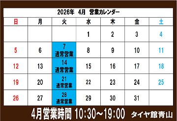 記事一覧 【〜火曜日ですが営業してます〜】 こんにちはー! 青森県弘前市にある タイヤ館 青山です!! 本日火曜日は通常であれば定休日ですが、タイヤ交換繁忙期の為、営業しております!! なので火曜日ですがドシドシご来店下さい! スタッフ一同ご来店お待ちしてますm(_ _)m 2026年4月7日 ポスト