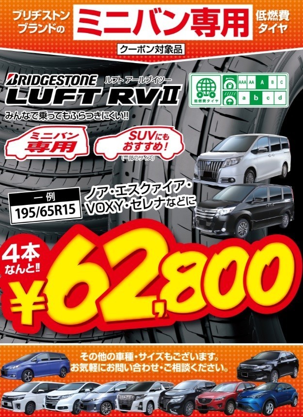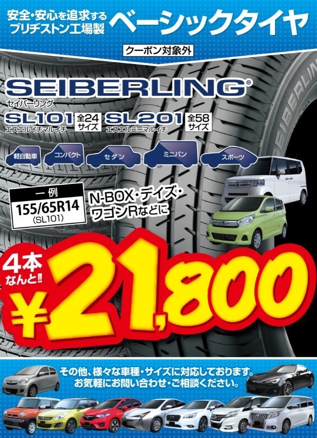 ★軽自動車・ミニバン・セダン 等お求めやすいタイヤもあります♪♪★ ポスト 2023年7月28日 いつもタイヤ館有田店のホームページを ご覧いただきありがとうございます!! 8/6(日)までプレミアムタイヤセール開催中 ですが お買い得タイヤもありますのでちょっとご紹介を☆ 軽自動車・コンパクトカー・セダン・ ミニバン・SUV・輸入車まで!! セイバーリング 安心のブリヂストン工場製 LUFT RVⅡ ミニバン・SUV向け ※4本セット価格です。別途工賃、廃タイヤ処分代等必要です。 上記以外のサイズも多数ございます! お気軽にお問合せ下さい! カテゴリ:お知らせ
