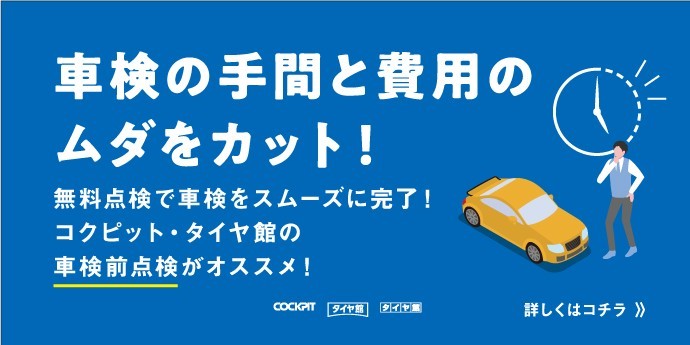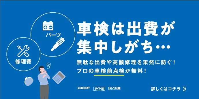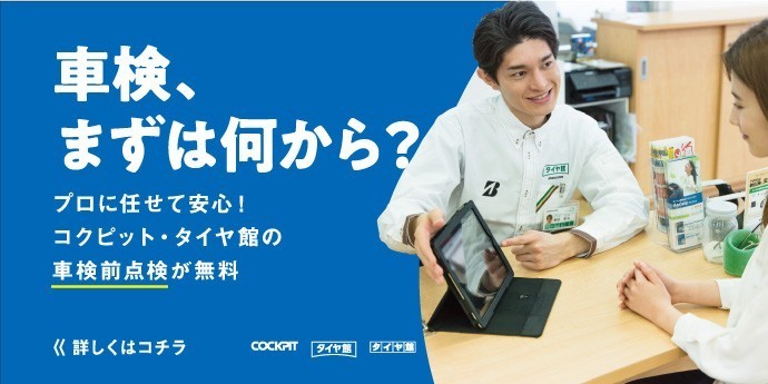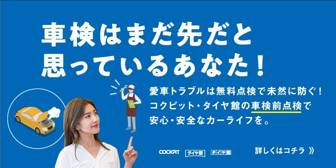 ⇒コクピット/タイヤ館の車検前点検、車検見積もり、車検のくわしい情報はコチラ