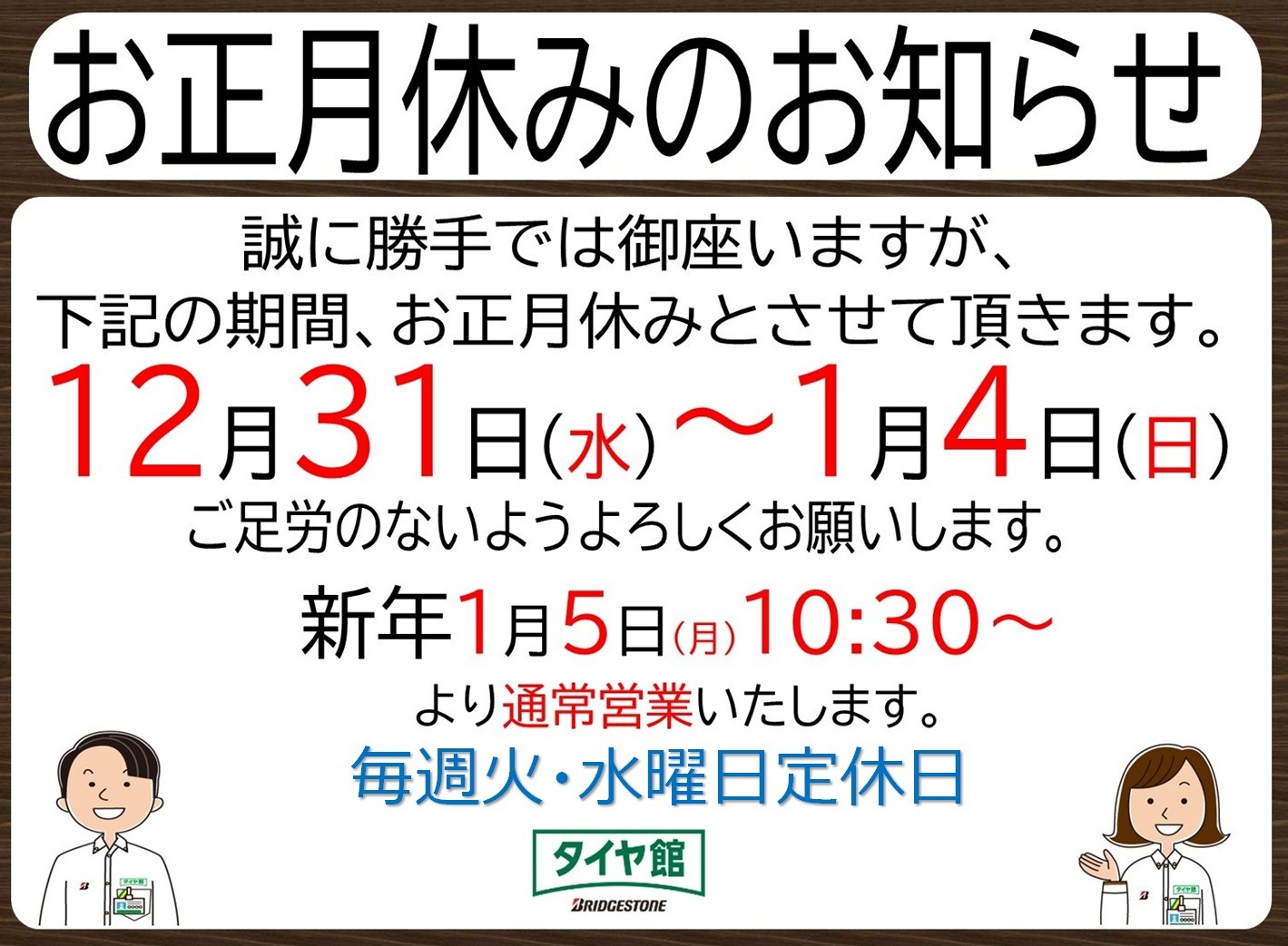2025年12月31日(水)~新年2026年1月4日(日)まで