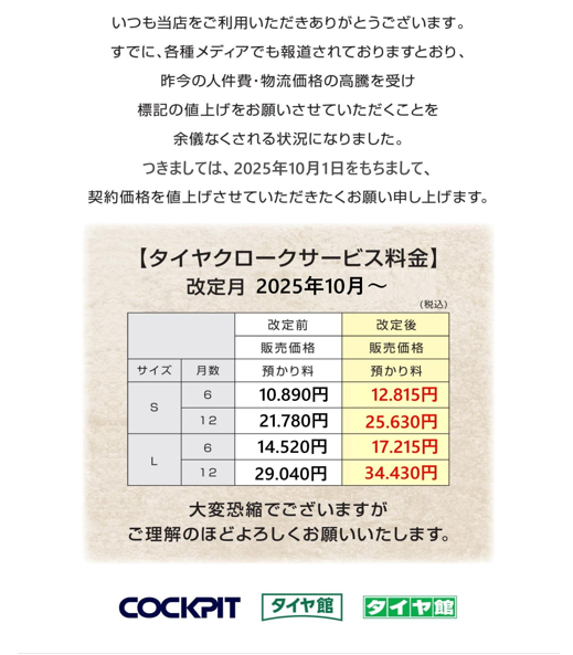 空気圧の点検、空気の補充は、コクピット・タイヤ館におまかせ!
