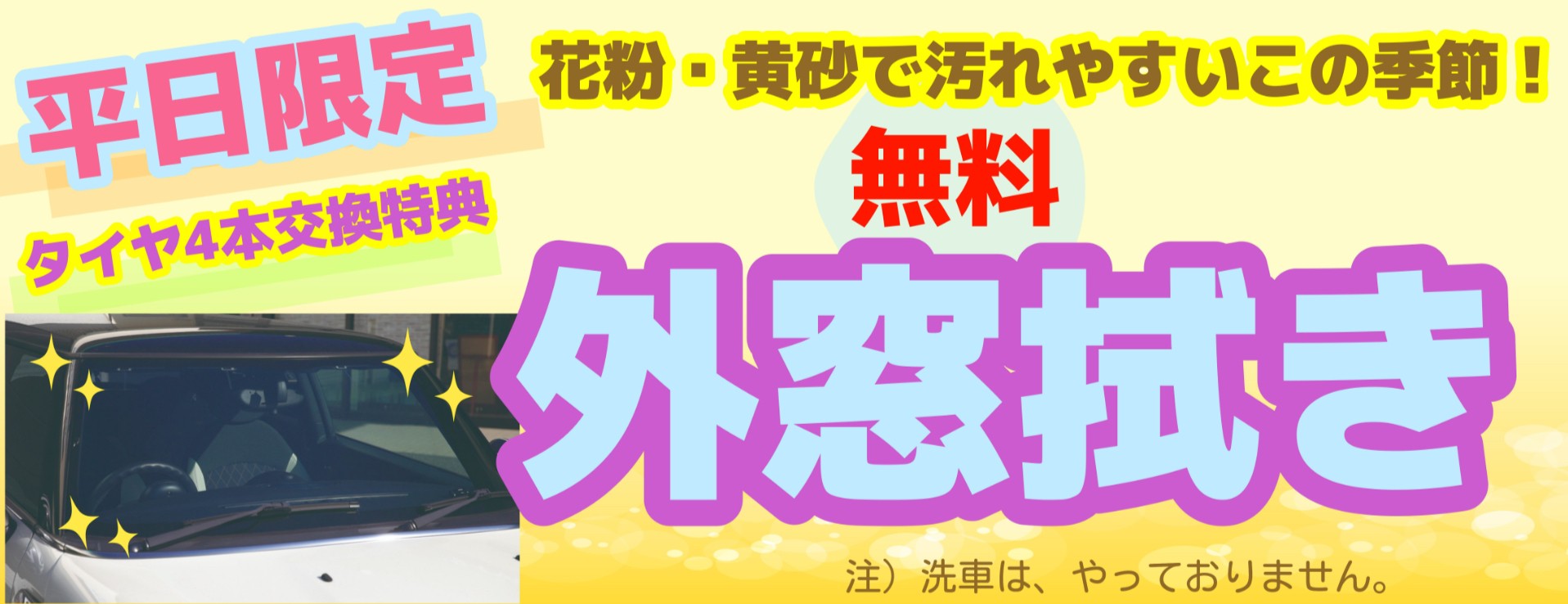 平日限定サービス!タイヤ4本交換で外窓拭き中!!