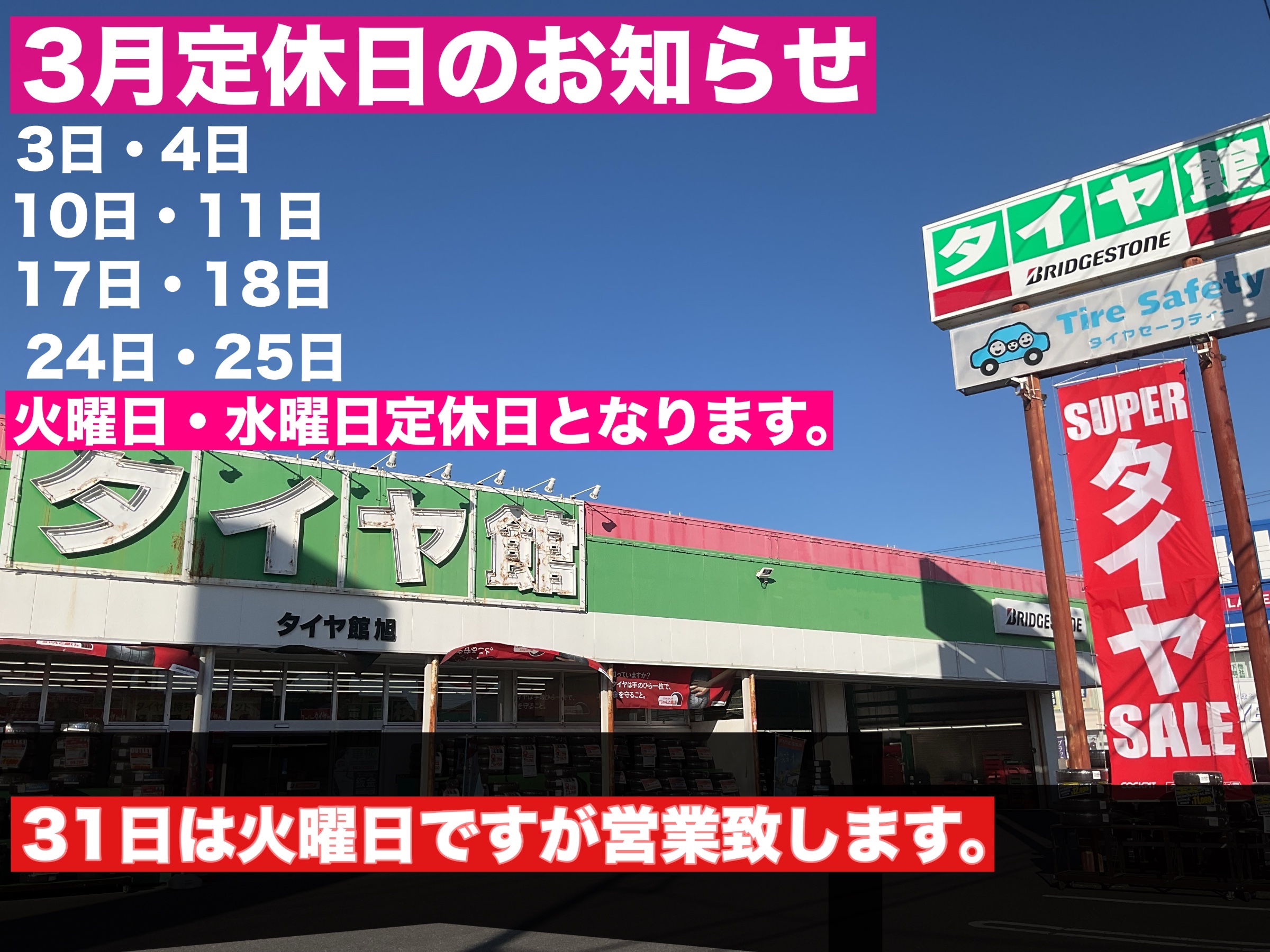 3月24日・25日は定休日となります