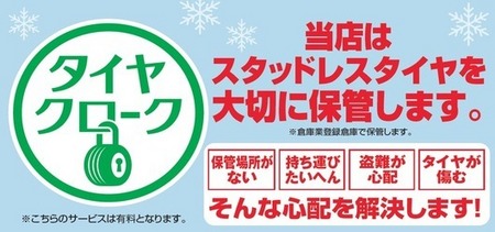 タイヤ館旭店では、タイヤ保管プログラム(タイヤクローク)を