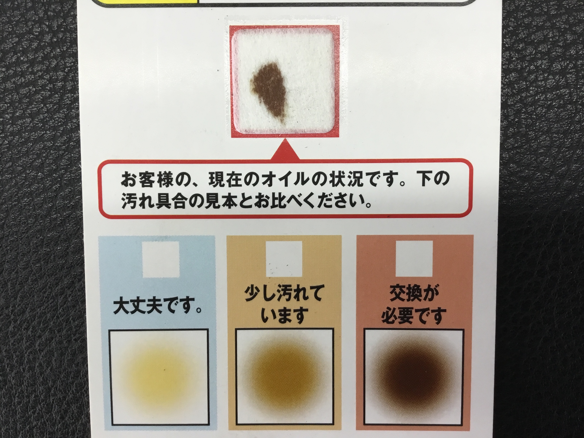 当店ではこちらの用紙を使って現在のオイルの汚れ具合をチェックします。
