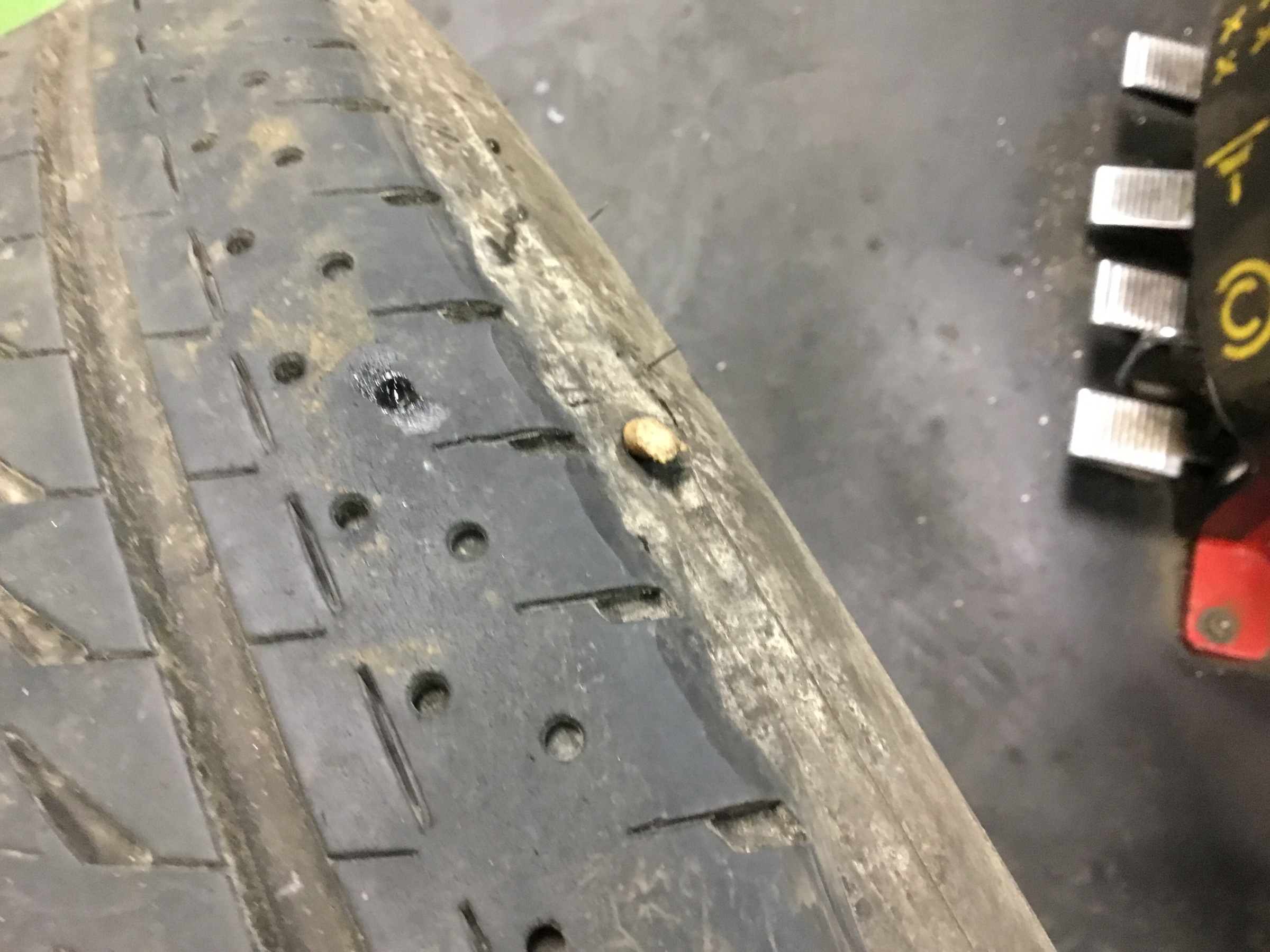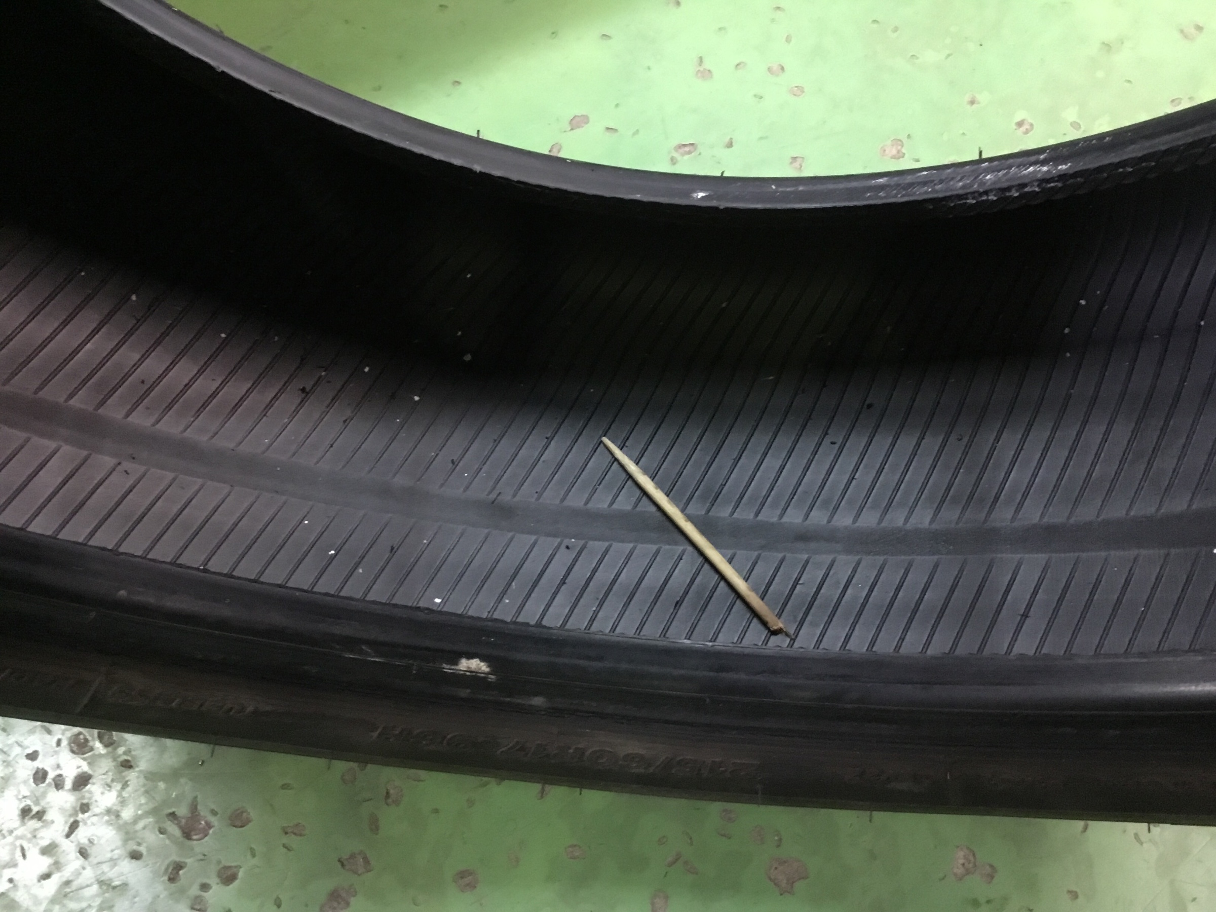 今回は刺さった場所が悪くパンク修理不可で