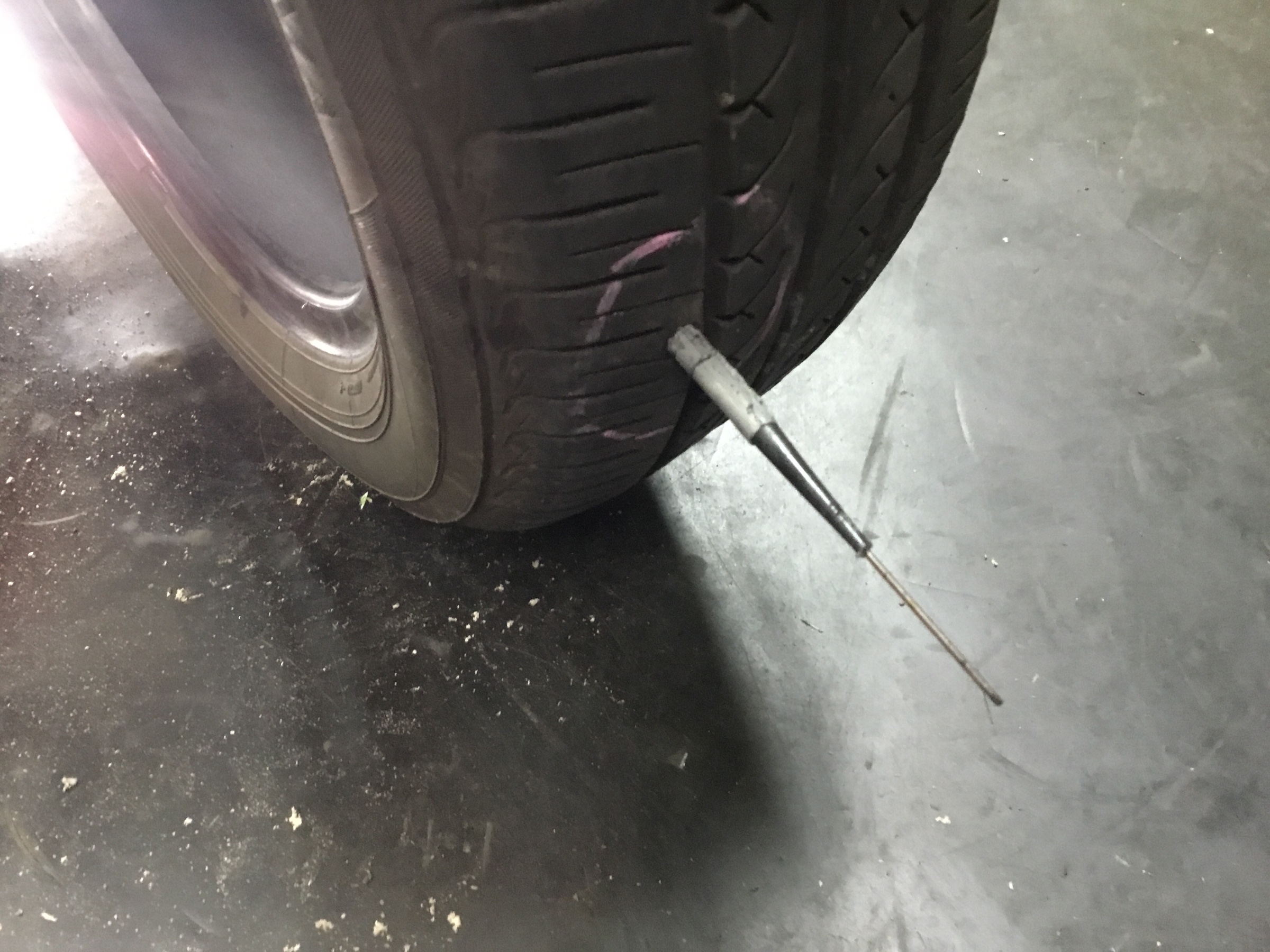 まず、ホイールからタイヤを剥がし刺さっているものの場所、