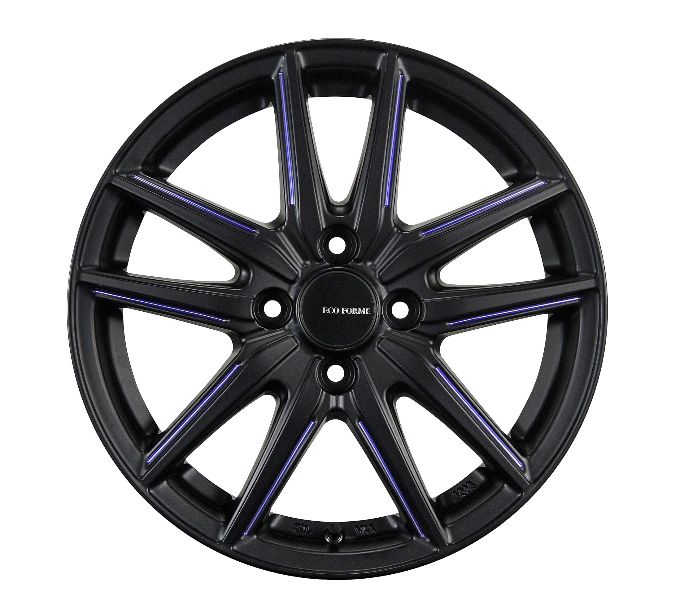 リムエンドまで伸びる2×5スポークデザインが大きな特徴のECO FORME SE-20をベースにして、新色マットブラックブルーラインを施すことで、安定感とダイナミックさに加えスタイリッシュさも兼ね備えた魅力的なホイールが「ECO FORME CRS20」です。ECO FORMEシリーズ初となるマットブラックが足元をシックに引き立て、さらにスポークデザイン面にカラークリア塗装で引いたブルーラインが、落ち着いた雰囲気の中にも軽快な印象を演出しています。