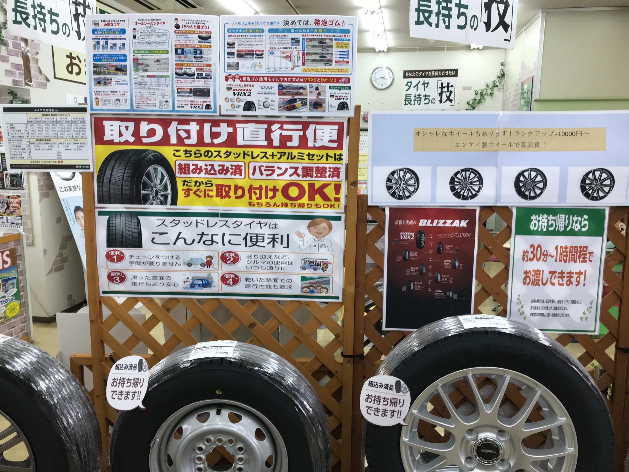 タイヤ館ではまだまだスタッドレスタイヤの販売をしています。