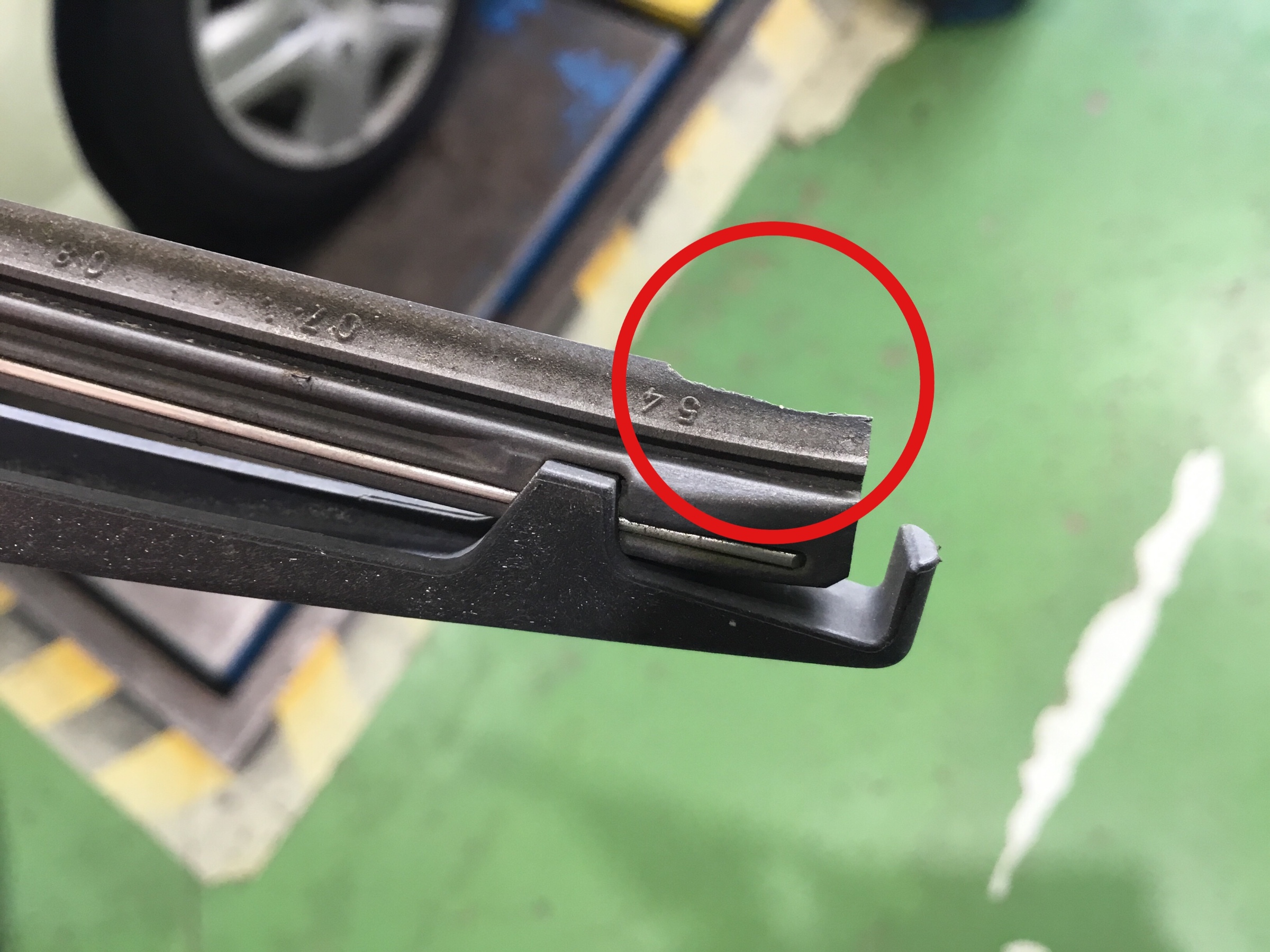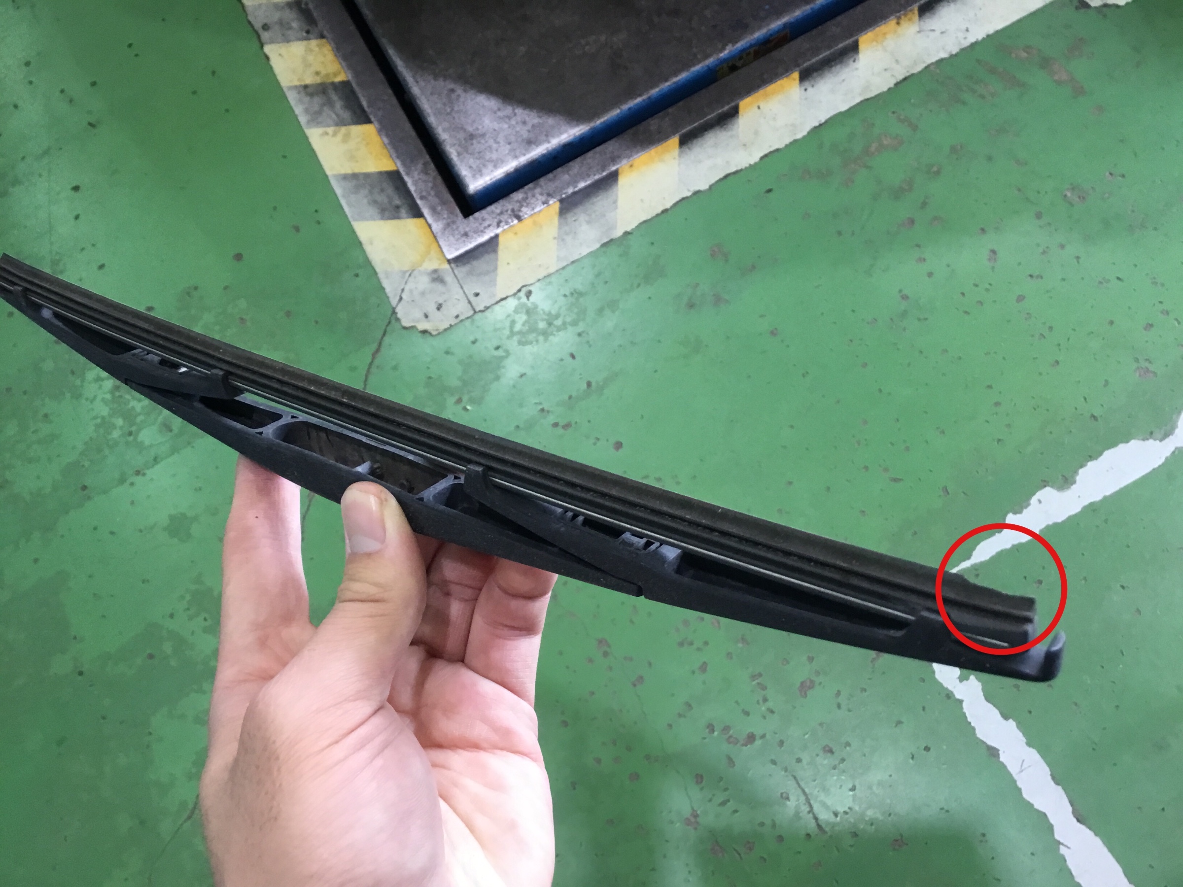 このようにワイパーゴムが切れていると拭きムラが出てしまいますので
