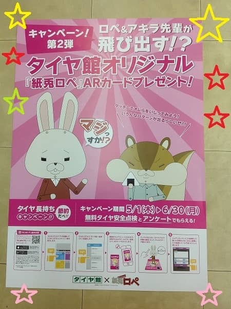 なんとなんと!タイヤ館オリジナル「紙兎ロペ」ARカードをプレゼントでございます!