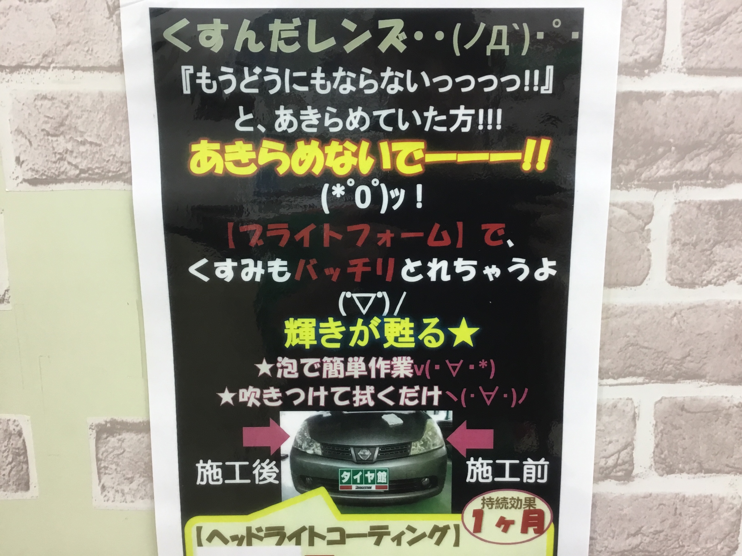 くすんでいるとライトの光も暗くなり夜間など見えにくくなる。