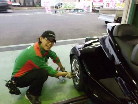 タイヤ館旭店では、観光バスから耕運機のタイヤまで、