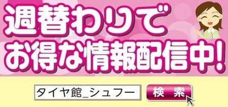 ただいまタイヤ館では、この【Shufoo!】にお得な情報を掲載させて頂いております。