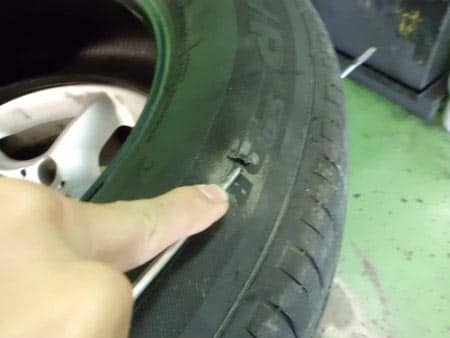 タイヤのサイド(脇の部分全般)部分は、パンク修理ができません。