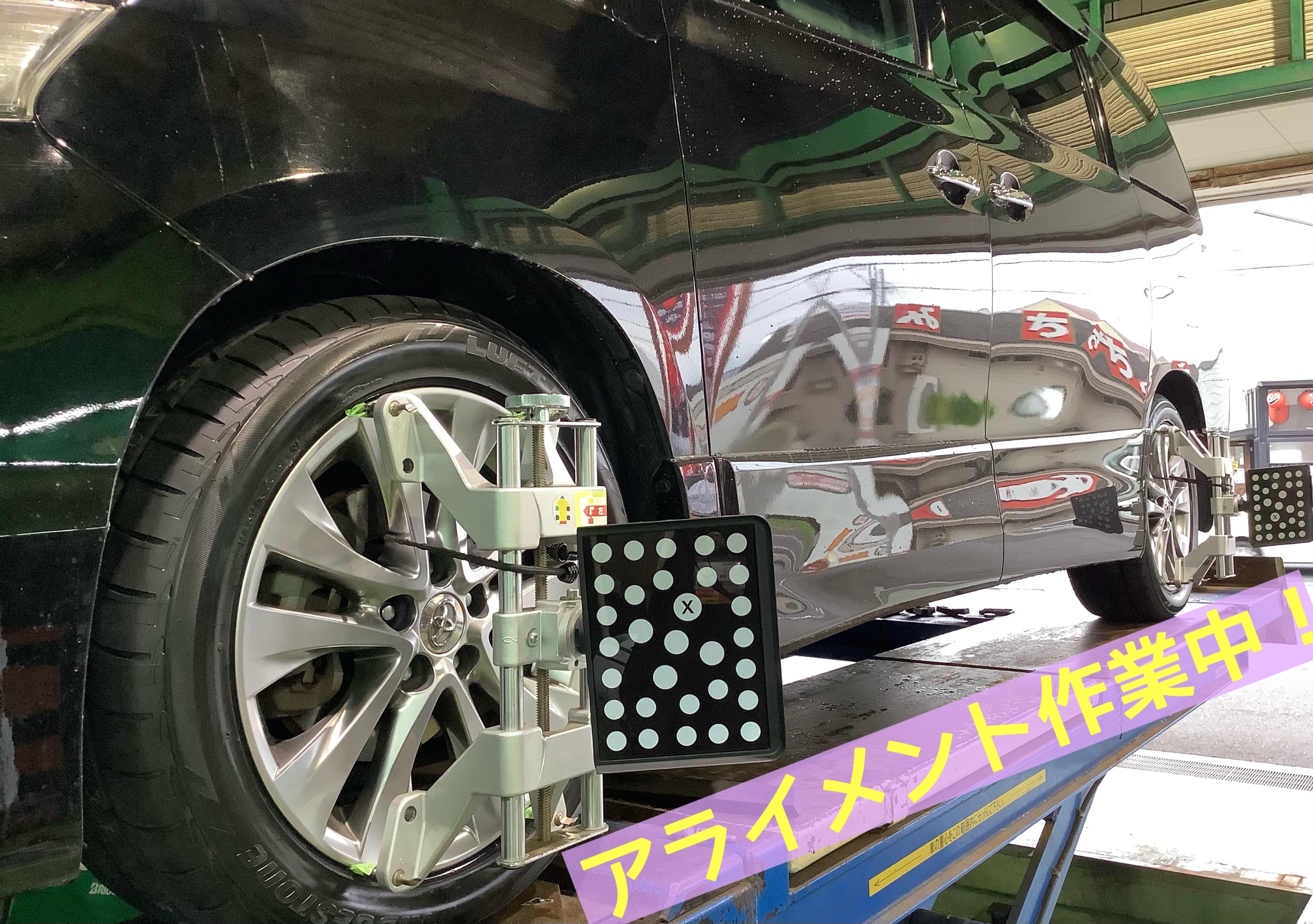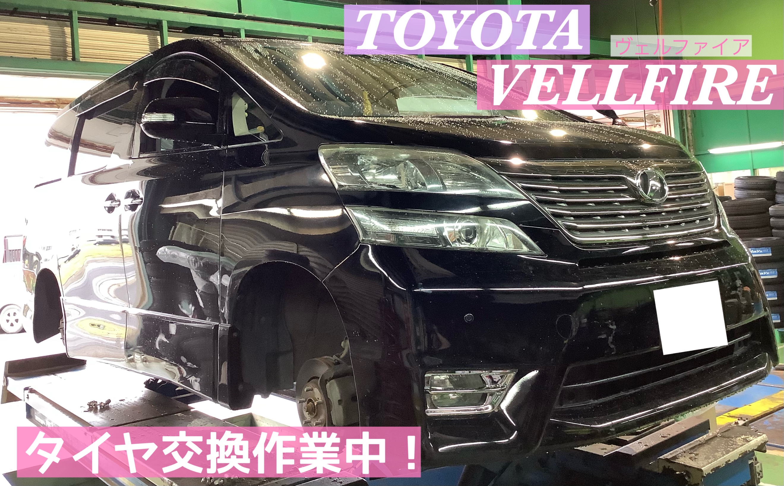 本日は、【トヨタ/ヴェルファイア】のタイヤ交換+アライメント作業です(*・∀・)ノ